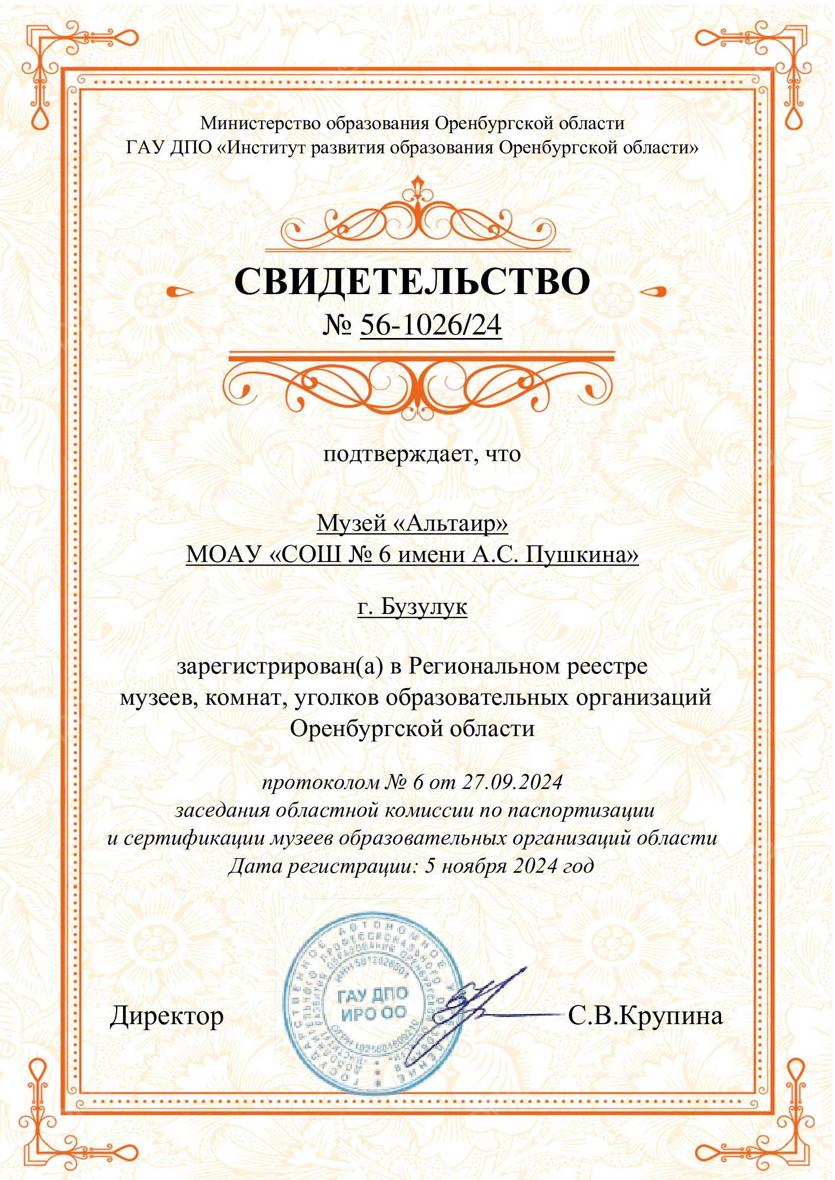 ДОКУМЕНТЫ ШКОЛЬНОГО МУЗЕЯ "АЛЬТАИР"