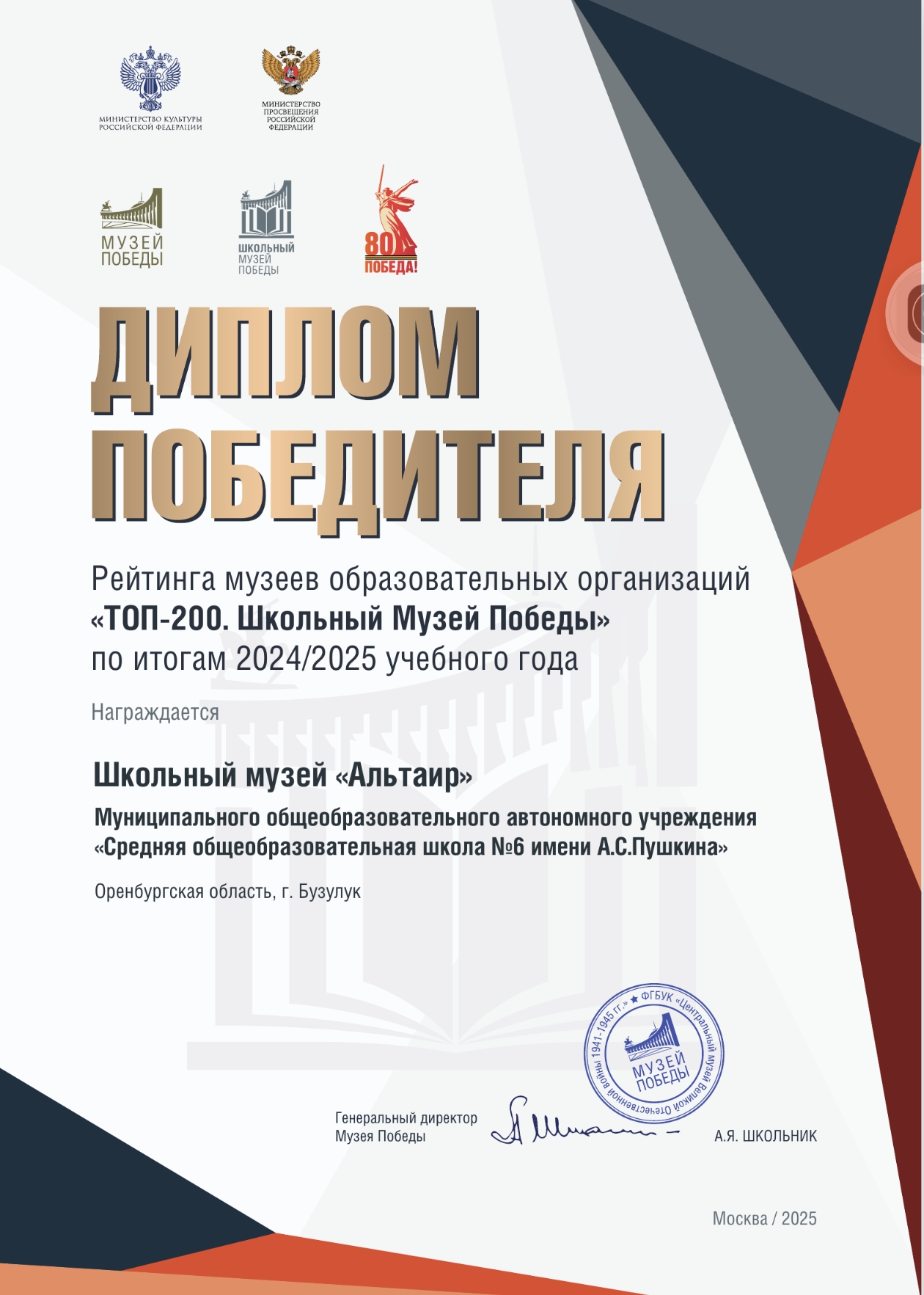ДОСТИЖЕНИЯ ШКОЛЬНОГО МУЗЕЯ "АЛЬТАИР"